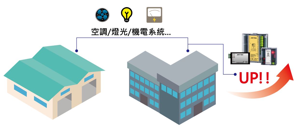 1. 小型廠戶/建築透過WC智能控制器將現場個空調/燈光/機電等系統直接升級整合為為智慧化樓控系統。
